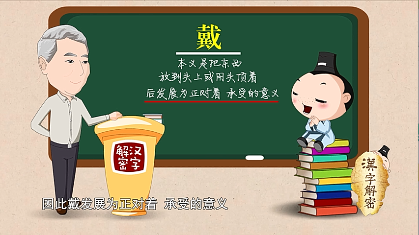 用头顶东西,这东西正处在头的中间,因此戴发展成正对着、承受的意义。(主讲人 孙玉文 北京大学中文系 教授)