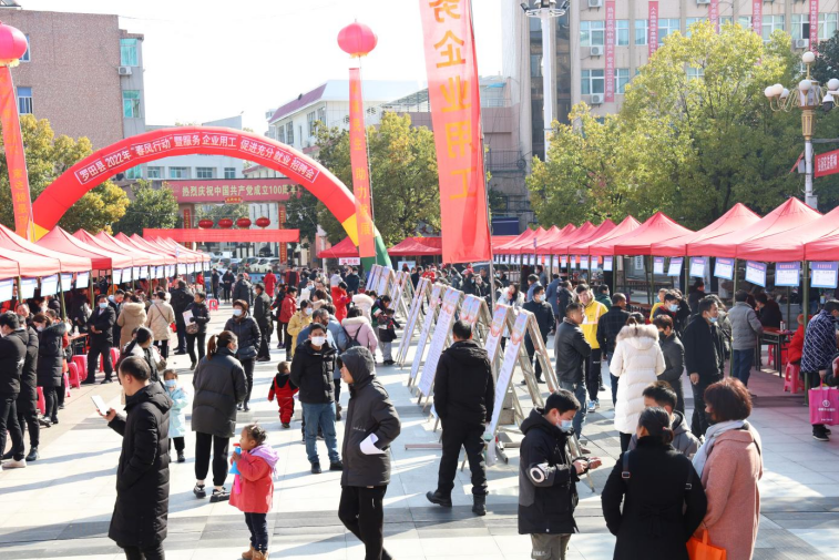 罗田县2022年“春风行动”暨服务企业用工 促进充分就业大型线下招聘会现场。
