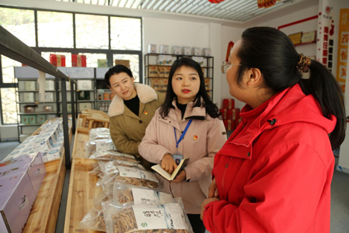 聚焦营商环境的堵点痛点难点,督促解决企业的操心事、烦心事、揪心事,持续推动营商环境优化升级。图为兴山县纪检监察女干部走访农产品经销店,了解优化营商环境政策落实情况。