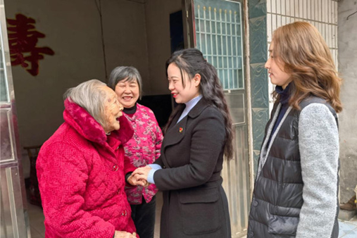 把群众放在心上,用脚步丈量民情,用行动温暖民心,在推动全面从严治党向基层延伸中展现巾帼担当。图为西陵区纪委监委女干部在104岁的高龄老人张开秀家中拉家常、问冷暖,了解惠民政策落实情况。