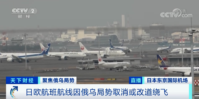 日本与欧洲之间的航班通常要飞越俄罗斯领空,但受俄乌局势影响,俄罗斯和欧盟之间已相互关闭领空,日本的航空公司也决定绕开俄方上空。据报道,包括货机在内,日本和欧洲之间每周约有300架次取消或者绕飞其他路线。