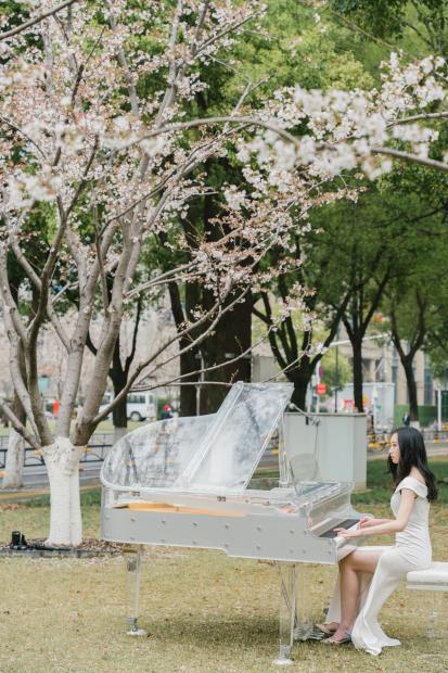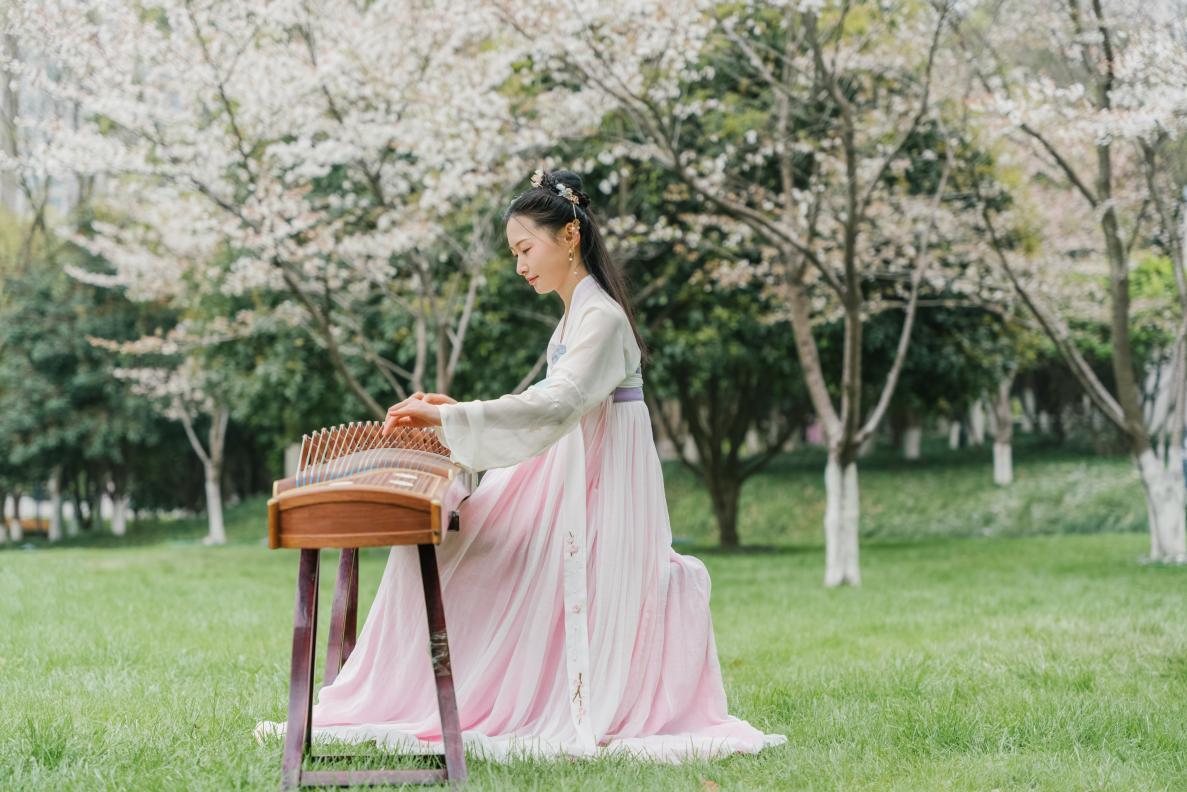 3月底,一位游客在王家墩公园樱花树下进行古筝演奏,朵朵樱花伴随着琴声初绽笑颜。在快节奏的城市生活中,一场短暂的古典浪漫,就是对春天最好的礼赞。