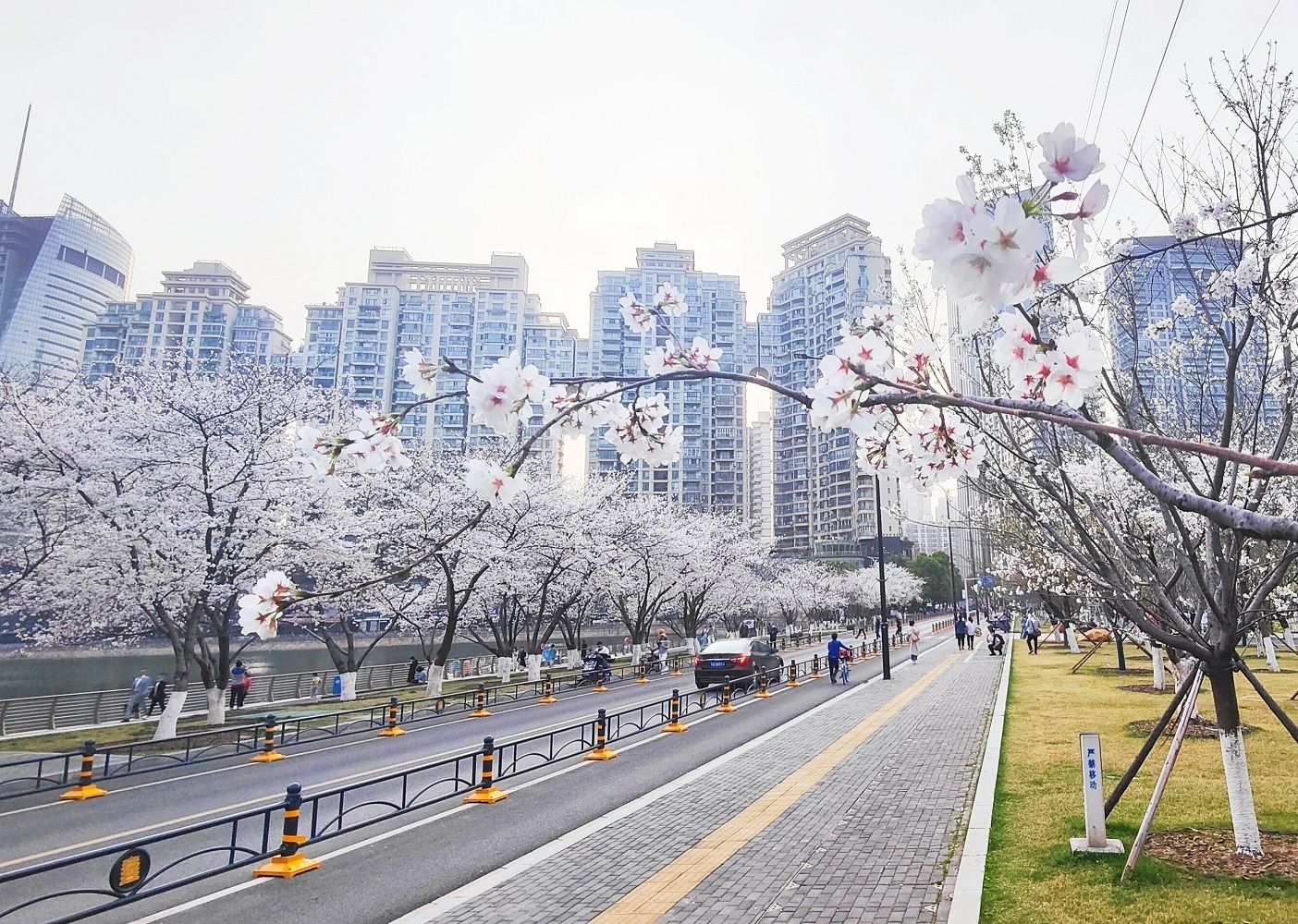 作为“樱花季”最受瞩目的城市,春季的武汉总是被樱花包围。即使在高楼林立、寸土寸金的江汉区,每处公园、每条街道,总能见到那一抹轻盈浪漫的粉白色。