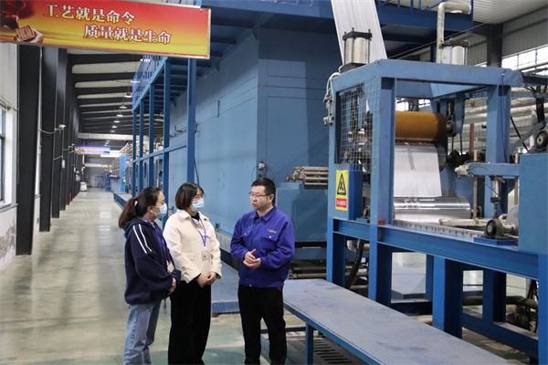 图为该市玉阳街道纪工委干部到鸿阳科技公司了解惠企政策落实情况
