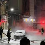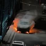 从现场照片来看,该车车底有大量明火冒出,并伴随着白烟,在火势蔓延下,车辆已经被大火吞没,现场视频中还传出了一声爆炸声响。