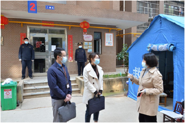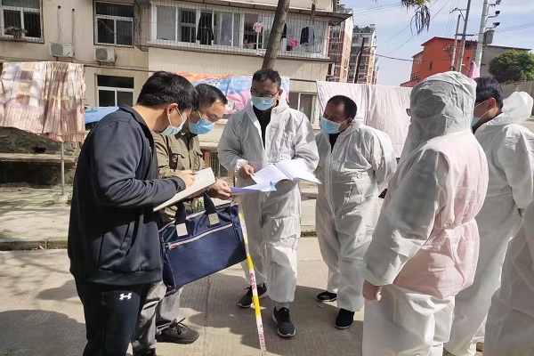 西塞山区纪委监委成立2个疫情防控专项监督组,围绕党员干部下沉、返黄人员摸排、居家隔离管控、商超等重点场所防控情况,采取不打招呼、不听汇报等方式直插一线、明察暗访,聚焦问题、现场反馈。同时,该区纪委监委其他干部下沉包保村(社区),积极参与入户摸排、上门走访,助力全区疫情防控工作。图为该区纪检监察干部了解相关楼栋封控情况。