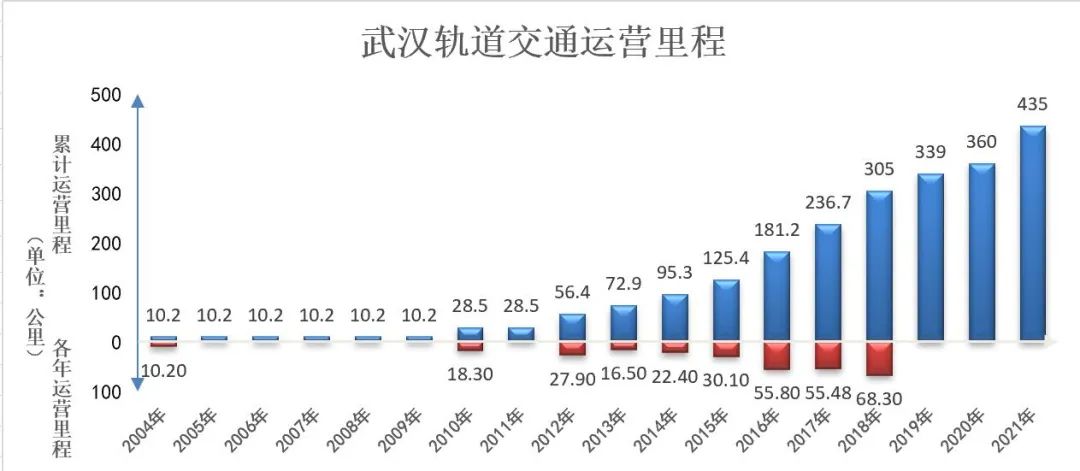 武汉地铁运营里程表。