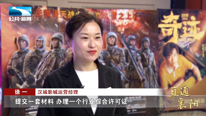 汉城影城运营经理 徐一:“只需要到行政服务大厅一个窗口,提交一套材料,办理一个行业许可证,就可以从事经营活动,既省时间也节约成本。”