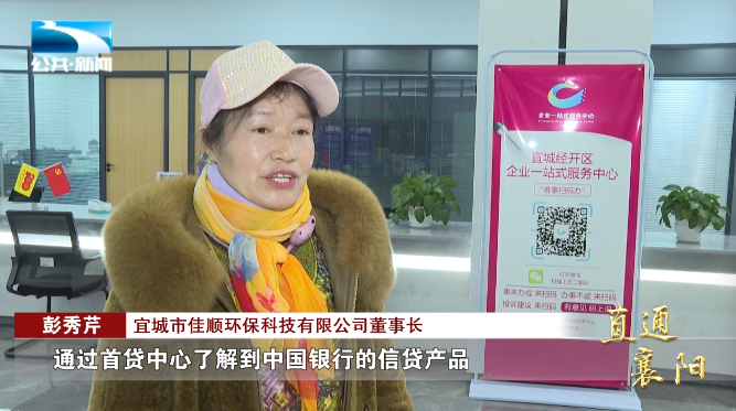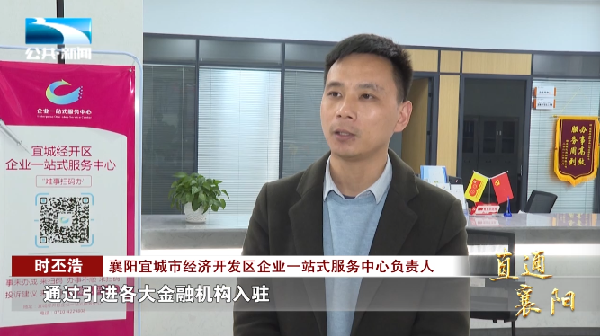 襄阳宜城市经济开发区企业一站式服务中心负责人 时丕浩:“通过引进各大金融机构入驻,向宜城诸多落户企业和个体提供各项贷款服务,缩短了审批时间,最快可实现两天内快速放款。”