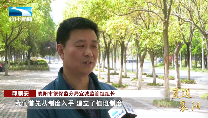 襄阳市银保监分局宜城监管组组长 邱顺安:“我们首先从制度入手 建立了值班制度 ,实行了‘主任行’制度。每一班确定一个‘主任行’,他具体负责平台的日常运行过程,实行轮换制度 ,我们是按照一个月一轮换,9家银行和6家保险机构我们分成3班进行轮班。”