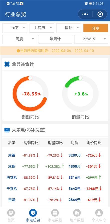 奥维云网数据罗盘显示,4月4日~4月10日数据,冰柜销量在上海一枝独秀 截图
