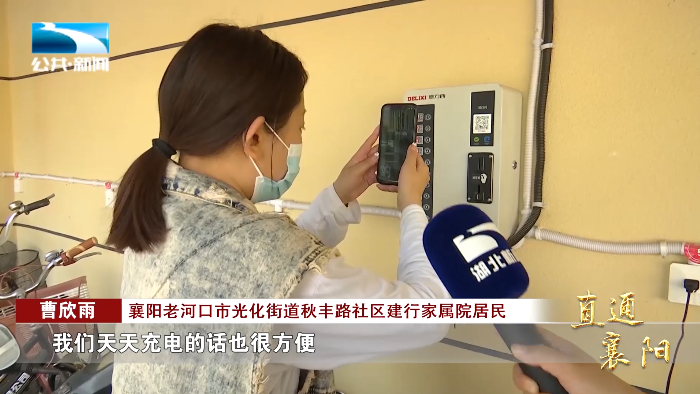 襄阳老河口市光化街道秋丰路社区建行家属院居民 曹欣雨:“这边弄了个充电桩之后,方便了我们居民,我们天天充电的话也很方便。”