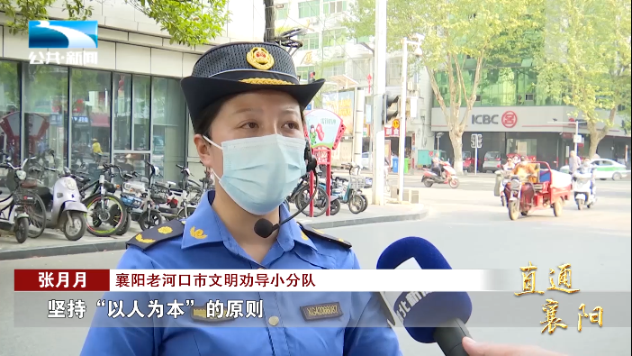 襄阳老河口市文明劝导小分队 张月月:“我们采取早上岗晚下班的交错方式,加强重点时段、重点路段的指挥、分流工作,有效保障了全市交通整体通畅,城区道路交通秩序明显好转,趋向规范。”