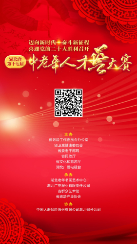 为深入实践社会主义核心价值观,大力弘扬孝亲敬老传统美德,不断满足广大中老年人日益增长的多层次、高品质健康养老和精神文化需求,展示中老年人迈向新时代、奋斗新征程、喜迎党的二十大的良好精神风貌,近日,湖北省第十七届中老年人才艺大赛正式启动。