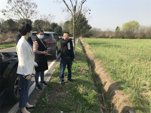 图为派驻市农业农村局纪检监察组有关负责人带队对蔡甸区大集街撂荒地问题整改情况进行督导检查
