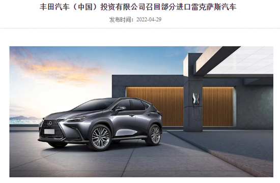同时,丰田宣布自2022年5月11日起召回生产日期在2021年3月31日至2022年3月17日的部分进口雷克萨斯NX 260、NX 350h、NX 400h+汽车,共计6832辆。