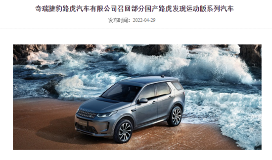 接下来,奇瑞捷豹路虎决定自2022年5月23日起,召回2019年12月11日至2021年3月3日期间生产的部分国产2020款路虎发现运动版、2020款路虎发现运动版新能源汽车,共计30517辆。