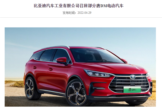 此外,比亚迪决定自2022年4月29日起,召回2021年9月2日至2022年3月14日生产的部分唐DM车型电动汽车,共计9663辆。