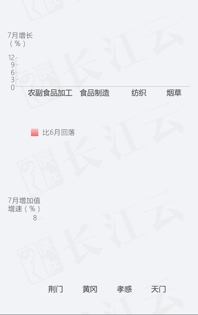 一是洪水对农业与农产品加工业的直接影响很大。截至7月14日17时,湖北省种植业受灾面积2802.57万亩,经济损失97.2亿元。水产品损失37万余吨,数以万计的生猪、羊、禽类死亡。农产品加工业增幅全线回落。7月当月,全省农产品加工业增加值增长5.1%,低于全部规上3.2个百分点,增速比6月回落2.8个百分点。天门市一家油脂企业7月产值甚至下降了34.6%。