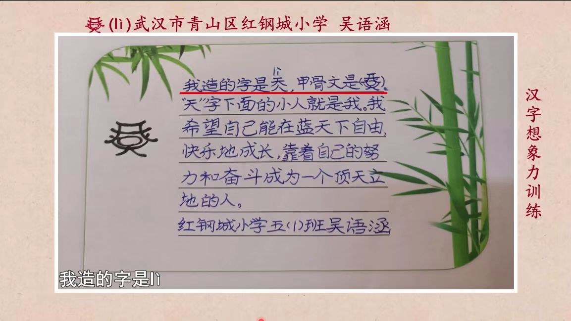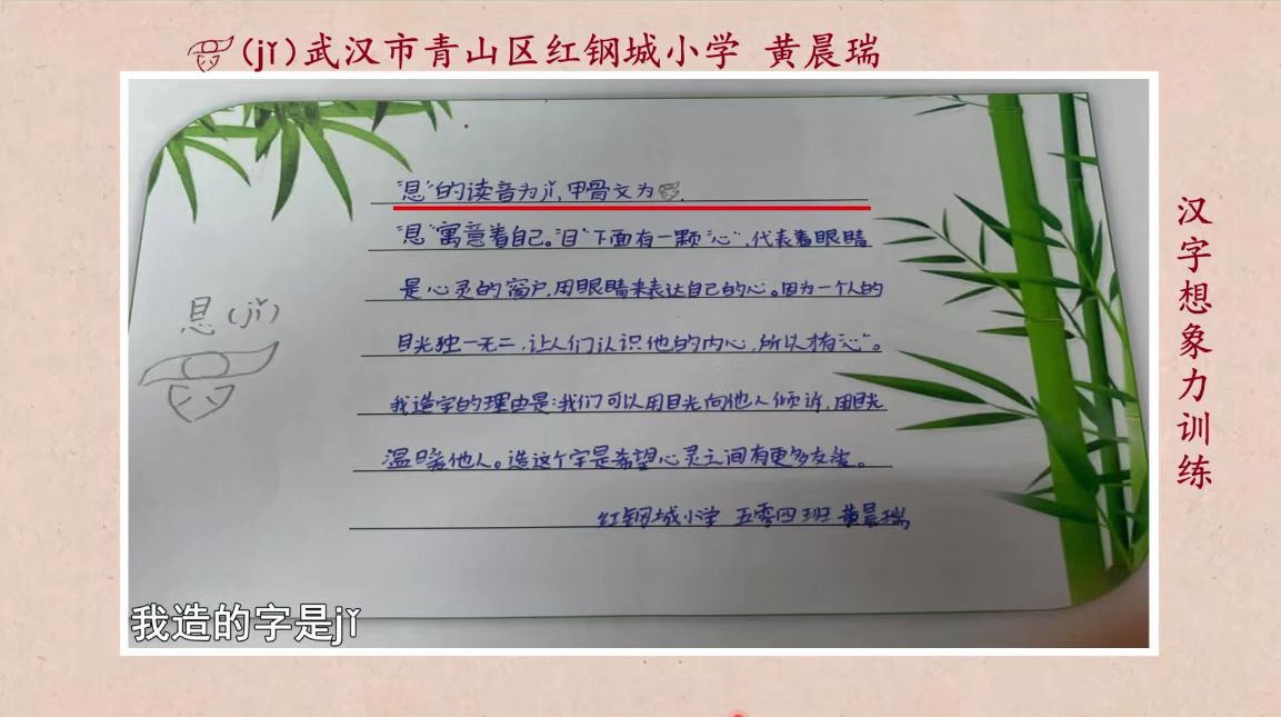 红钢城小学五年级二班胡梦辰:我也造了一个表示自己的字!