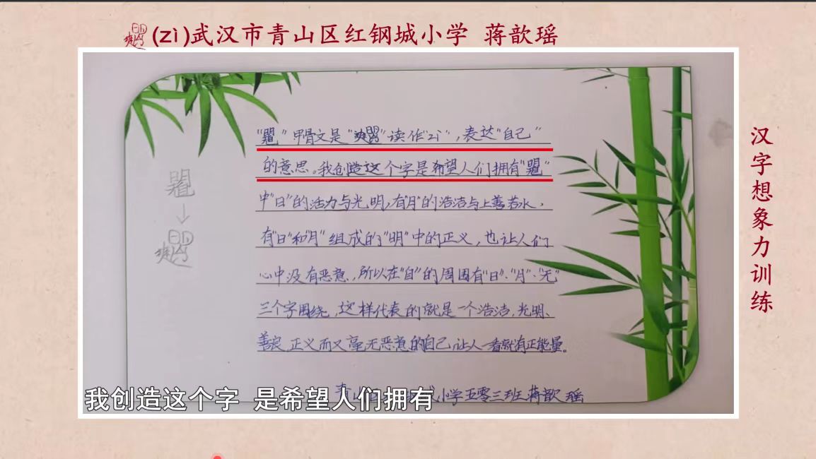 日前,在湖北电视教育频道精品栏目《汉字解密》开展的“小小造字家”汉字想象力训练活动中,来自武汉市青山区红钢城小学的同学们发挥自己的想象力,向栏目投稿造字作品,并被采用。