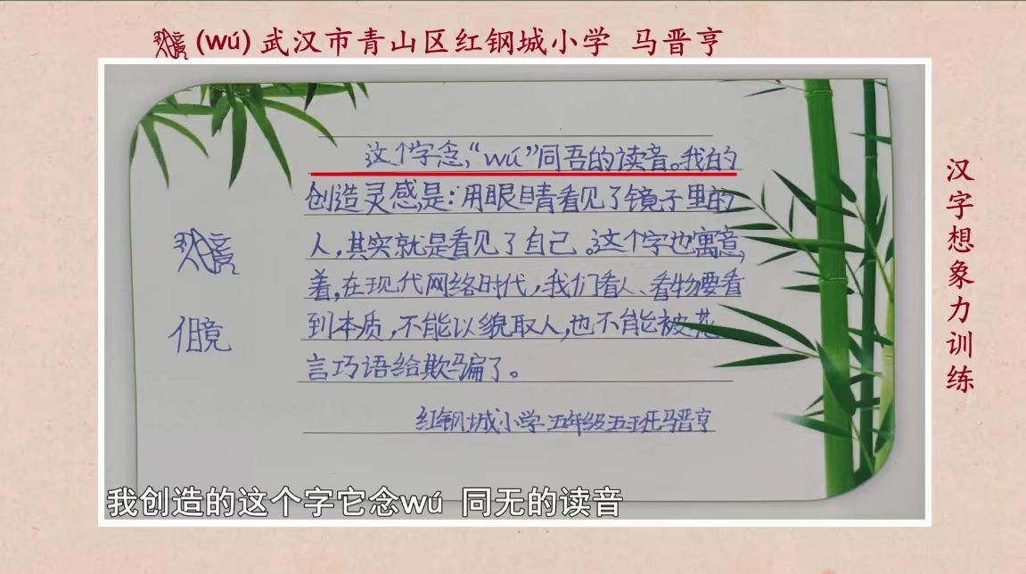 红钢城小学五年级五班马晋亨:怎样才能看见自己?我造的这个字会告诉你答案。