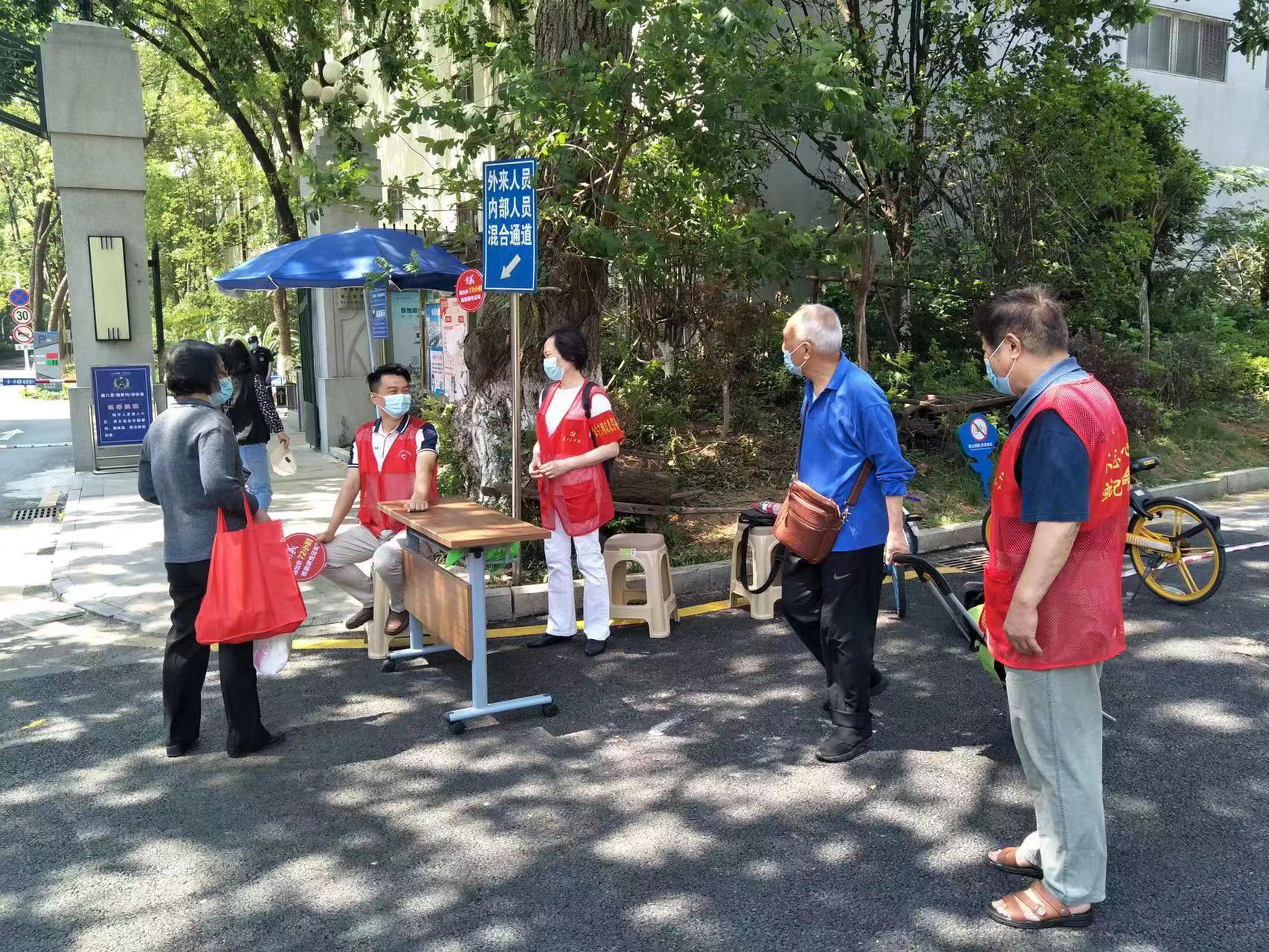 迎着朝阳、伴着晚霞,5月7日,武汉市武昌区首义路街701社区第二轮门岗值班党员志愿者开始在社区北大门值守。