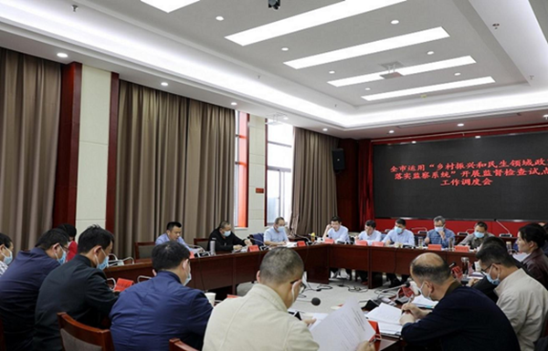 为探索运用大数据技术对乡村振兴和民生领域政策落实情况开展监督检查的有效途径,扎实推进乡村振兴和民生领域政策落地见效,今年3月,咸宁市积极开展运用“乡村振兴和民生领域政策落实监察系统”对部分乡村振兴和民生领域惠民政策落实情况开展监督检查试点工作。图为咸宁市纪委监委召开运用“乡村振兴和民生领域政策落实监察系统”开展监督检查试点工作推进会。