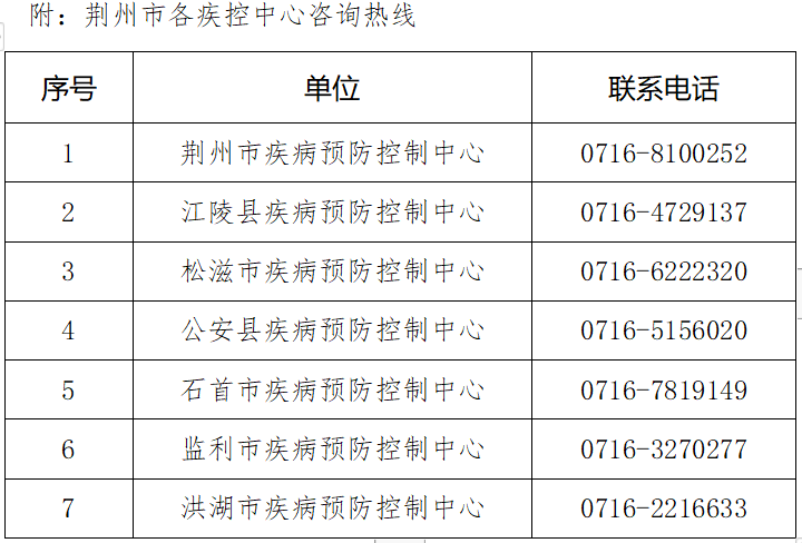 一、2022年5月3日(含)以来有河南省濮阳市南乐县元村镇、北京市顺义区、昌平区霍营街道和海淀区清河街道旅居史的来荆返荆人员请主动到当地社区进行申报,并配合当地疫情防控指挥部的所有防控措施。如有疑问可拨打我市各疾控中心咨询热线,号码附后。