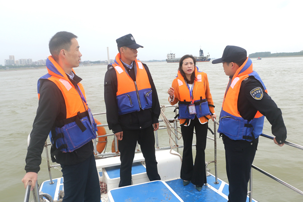 图为枝江市纪检监察干部对水利部门巡江情况进行实地走访了解