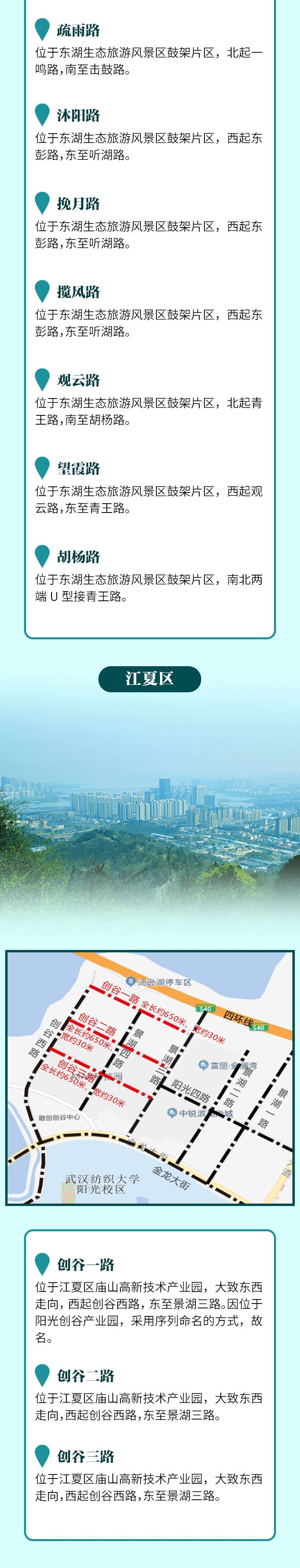 这是国家新《地名管理条例》公布后武汉发布的标准地名通告,路名寄托对美好生活向往和区域发展的寓意更为强烈。
