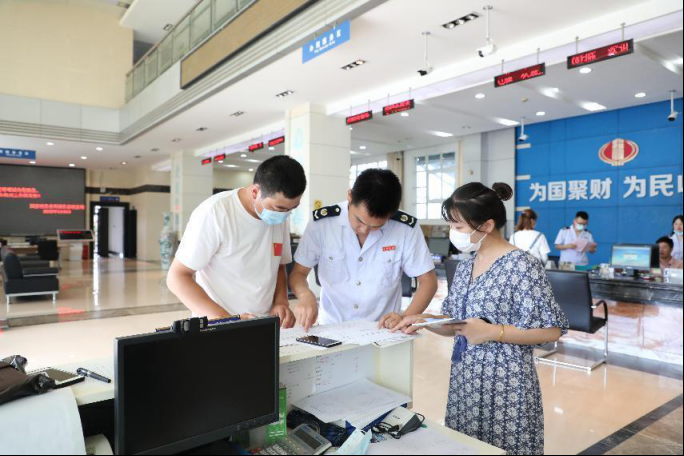 嘉鱼县纪委监委紧盯财政、发改、税务等重点部门,围绕涉企优惠政策落实“中梗阻”、涉企服务“慵懒散慢拖”和不担当、不作为等问题开展监督,确保各项惠企政策“红包”精准落袋。图为该县纪检监察干部在税务局监督检查减税降费政策落实情况。
