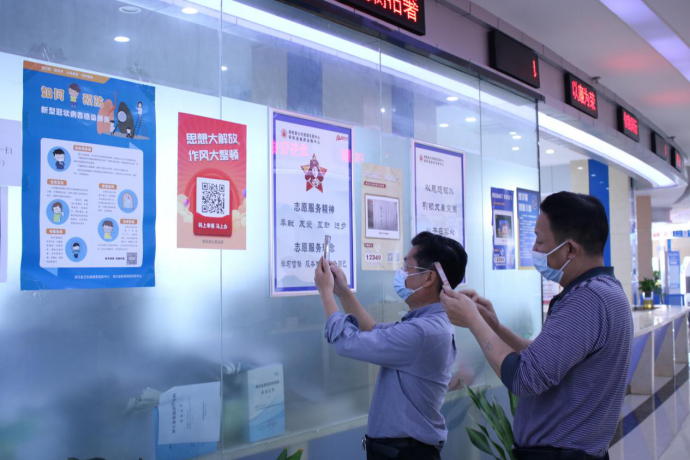 借助信息化优势,崇阳县纪委监委开通微信二维码“扫一扫”举报功能,在窗口单位、企业、镇村办公楼等人口较为密集且适宜张贴的醒目位置,公布微信举报二维码,广泛收集有损营商环境、群众身边违纪违法行为等问题线索。图为该县政务服务中心大厅办事群众在扫码,了解相关政策。