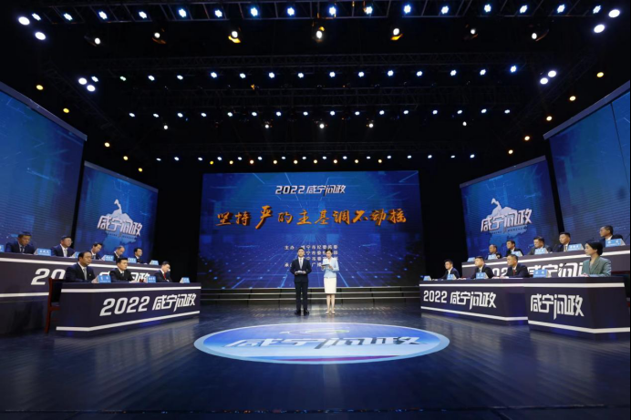 咸宁市纪委监委聚焦优化营商环境,对职能部门在项目推进、惠企政策落实、行政审批、涉企执法等方面存在的典型问题,进行重点监督,以问政形式通报曝光,推动加速优化营商环境。图为2022年咸宁问政首场问政现场。