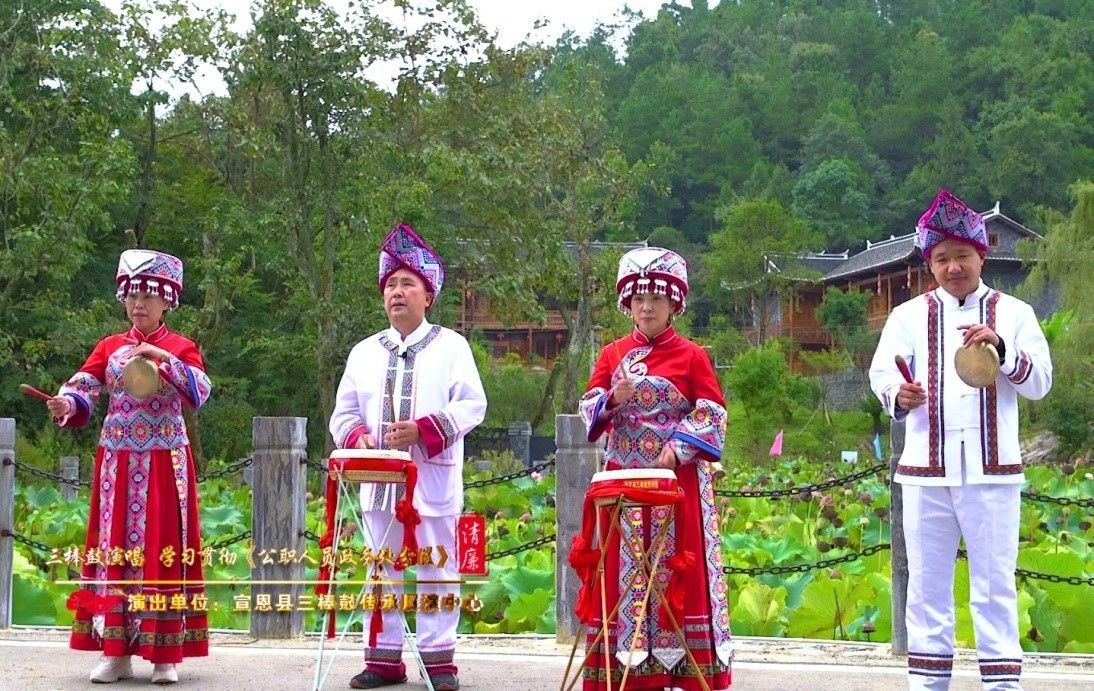 宣恩是少数民族聚居区,民族民间文化底蕴深厚。该县纪委监委联合县文化部门,组织文化从业人员、民间文艺团体及民间艺人,深入挖掘清廉文化资源,广泛采取快板、小品、舞蹈、曲艺等形式,编创了《风清气正顺民心》《清莲颂》《反腐倡廉第一桩》等60多件集思想性、艺术性、观赏性于一体的优秀清廉文艺作品。并积极通过荆楚文艺轻骑兵、送戏下乡等平台,走乡镇、进社区、穿村寨面向党员干部及广大人民群众进行表演。同时,充分利用“两微一端”等新媒体平台,推动清廉文化进网入端,用通俗易懂、喜闻乐见的方式引导和推动广大党员干部群众涵养“以清为美、以廉为荣”的价值取向,推动清廉文化深入基层一线、深入干部群众。