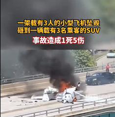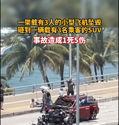 据美国全国广播公司(NBC)报道,当地时间5月14日,美国一架载有3人的小型飞机在迈阿密附近的一座桥上坠毁,砸到桥上一辆载有3名乘客的SUV。事故造成1死5伤。