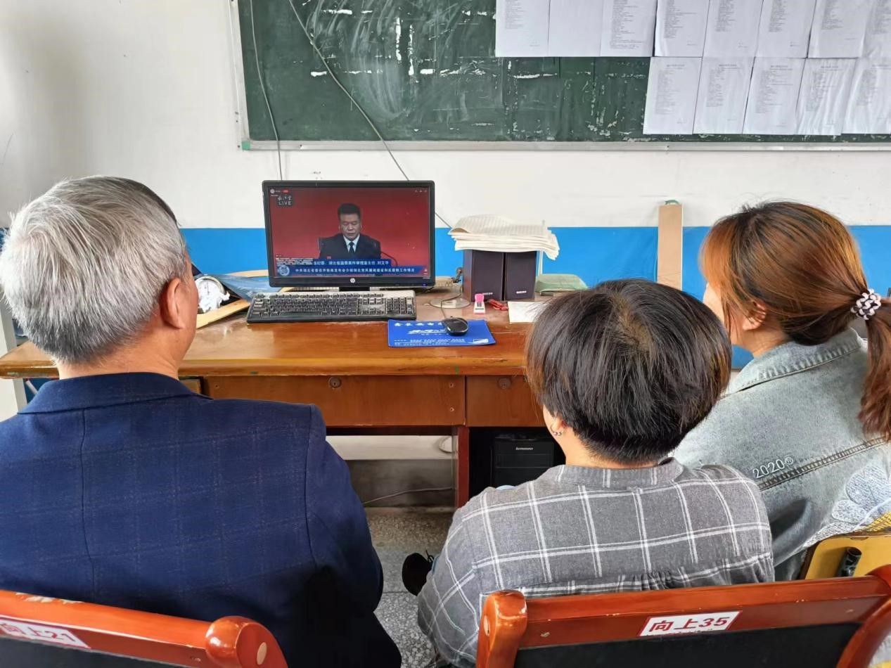松滋市街河市镇向上中学组织教师观看新闻发布会