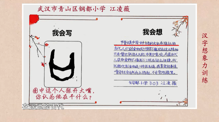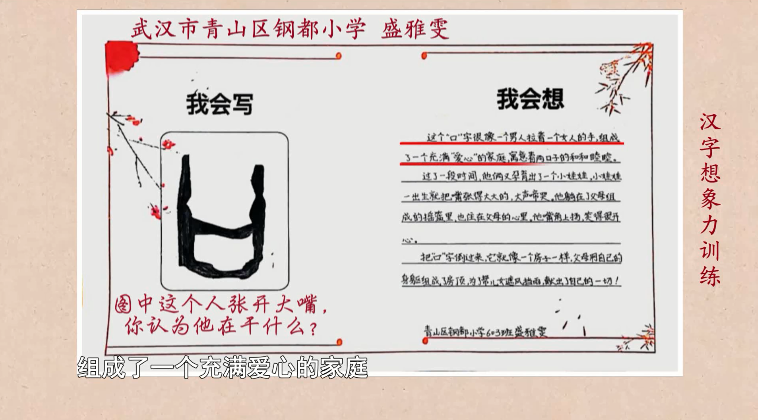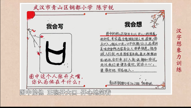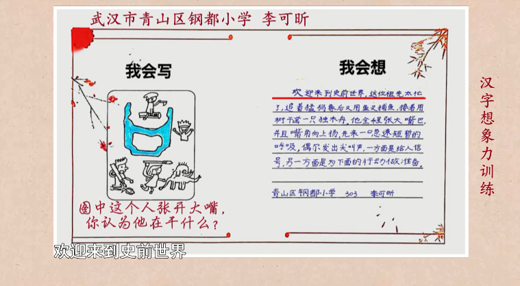 日前,在湖北电视教育频道精品栏目《汉字解密》开展的“小小造字家”汉字想象力训练活动中,来自武汉市青山区钢都小学的同学们发挥自己的想象力,向栏目投稿造字作品,并被采用。