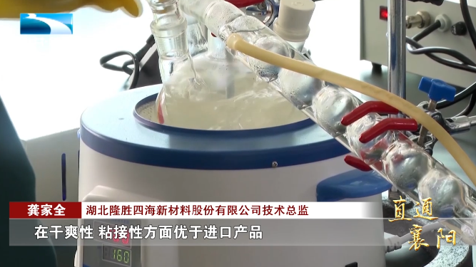 湖北隆胜四海新材料股份有限公司技术总监 龚家全:“我现在手里拿的产品叫耐火云母带用有机硅胶粘剂,就是‘产学研’合作的结晶。在干爽性、粘接性方面优于进口产品。产品2018年上市,当年就实现了5000万的销售收入,2021年实现产值3亿元,占云母带市场60%以上的市场份额。”