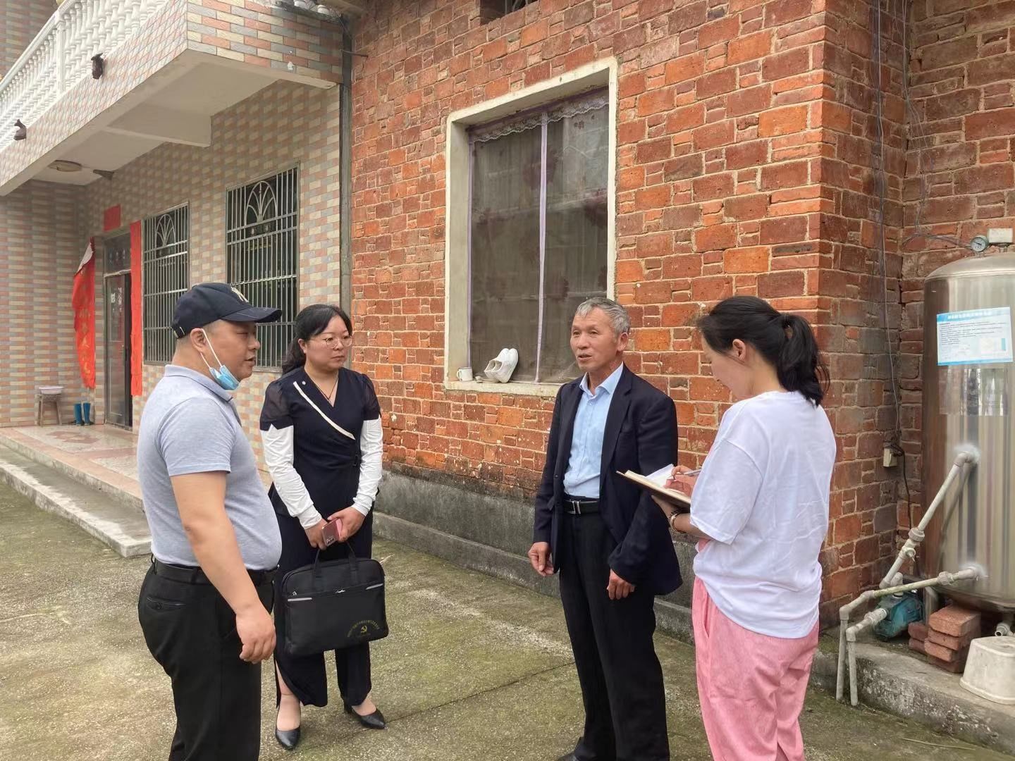图为咸宁市咸安区纪委监委、乡镇(街道)纪(工)委、村级纪检组织“三级联动”,走村入户了解村组干部“四风”问题线索。