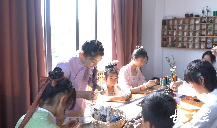 八百里武当,跨越六百年时空,献给世界一座文化瑰宝。武当文化源远流长,在武当山美丽的太极湖畔——云溪草堂,一场浓浓的“端午雅集”正上演。一群可爱的孩子们在老师的带领下正在画五毒、编五色丝线、做香囊。民谣说:“端午节,天气热,‘五毒’醒,不安宁。”五月初五端午节这一天被人们认为是“九毒”之首,所以民间便流传了许多驱邪、消毒和避疫的特殊习俗。在用红纸印画五种毒物,再用五根针刺在“五毒”的上面,就认为毒物被刺死,再不能横行了。