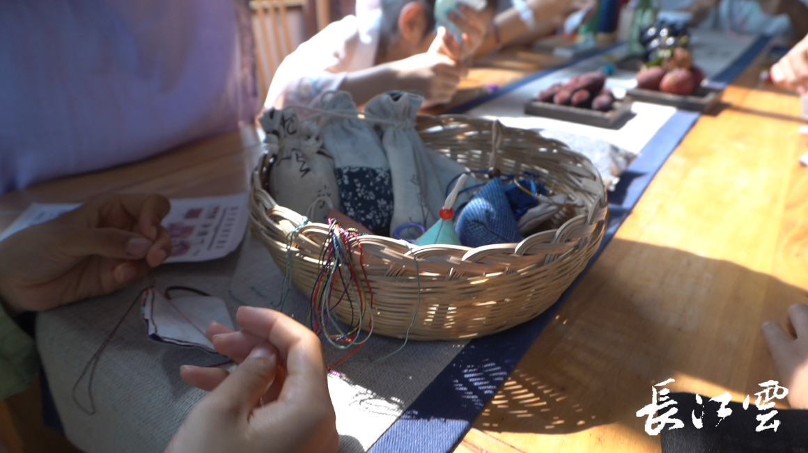 “香包襟上戴,娃娃逗人爱。”给孩子戴香包,这是普遍流行的习俗。香包是用棉织品和丝线绣成的,包里除了装些雄黄、苍术外,还要装香草配成的香料,戴在身上起驱虫除秽的作用。它的制作工艺已成为国家级非物质文化遗产。如今成为端午节特有的民间艺品。