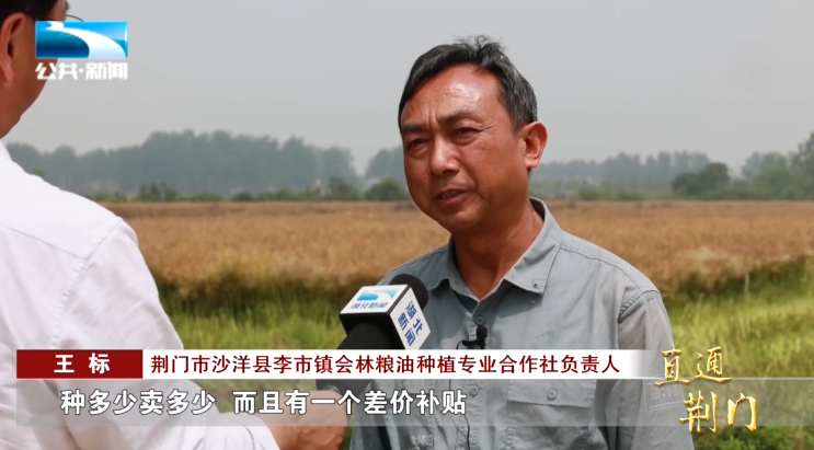 荆门市沙洋县李市镇会林粮油种植专业合作社负责人 王标:“一亩田(油菜籽)晒干以后的平均产量258斤,每亩的产值是980多块钱,每一亩田享受到了150块钱的政府农资补贴,感觉到产量和效益都还不错,因为我们和荆品油脂直接签了订单合同以后,种多少卖多少,而且有一个差价补贴。”