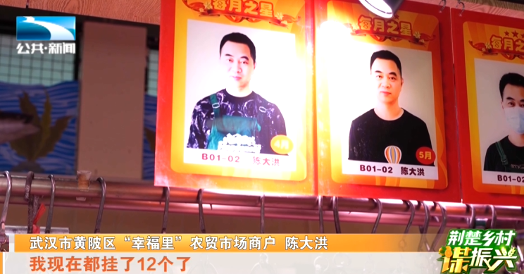 武汉市黄陂区“幸福里”农贸市场商户 陈大洪:“我现在都挂了12个了,没地方挂了,底下还有一些没挂,每个月的生意比以前好多了,翻了两三倍。”