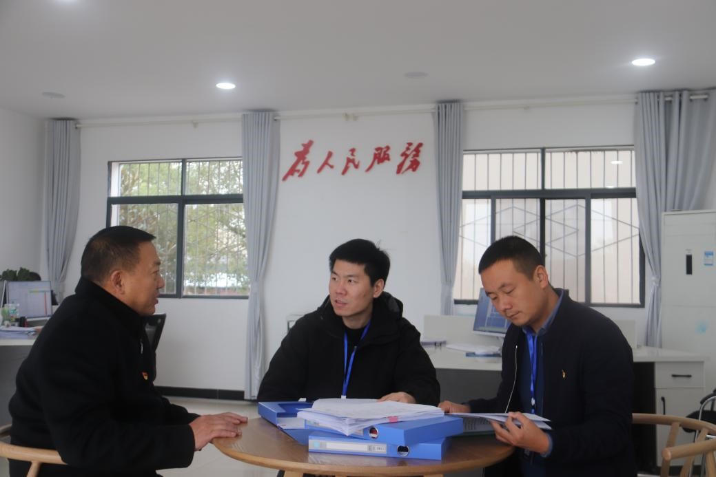 图为当阳市纪检监察干部在庙前镇桐树垭村向工作人员询问精简会议落实情况