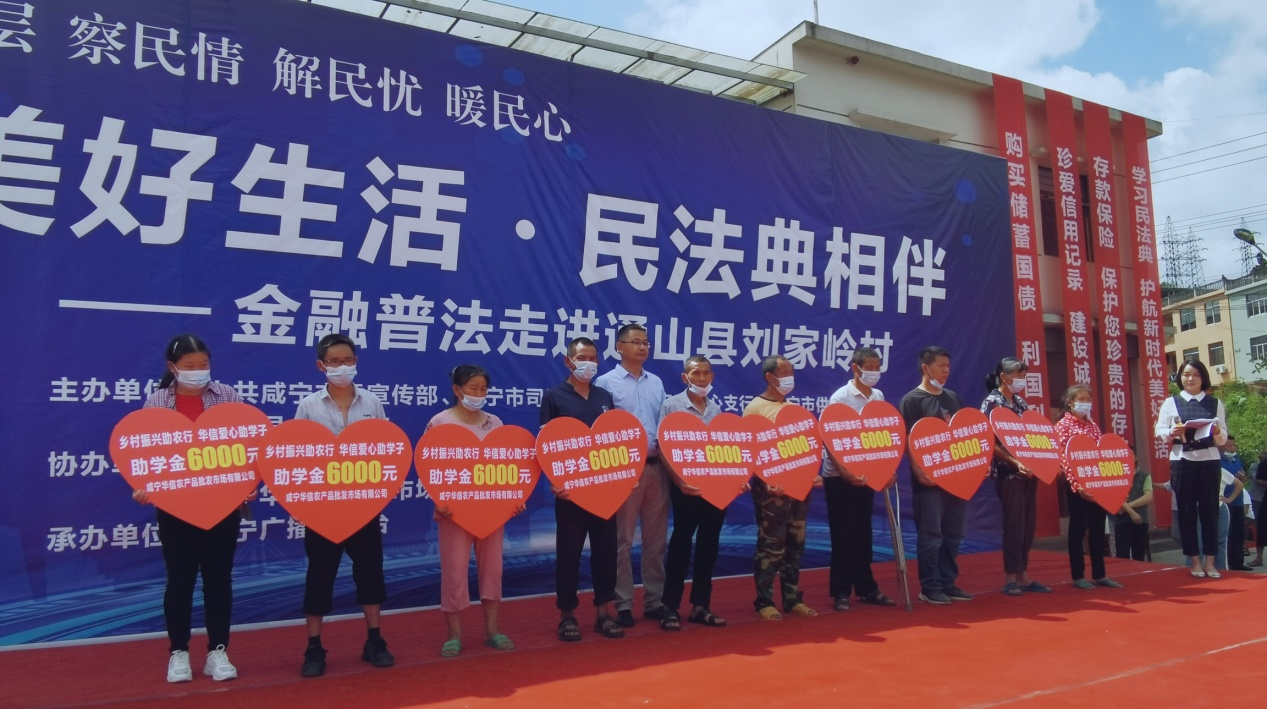 咸宁华信农批大市场向该村10名贫困学子每人捐赠爱心助学金6000元。