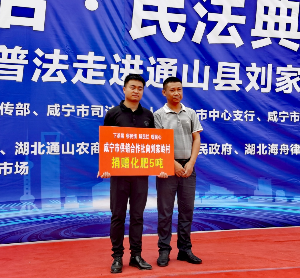 咸宁市供销合作社现场向刘家岭村捐赠了化肥五吨,支持村级集体经济发展。