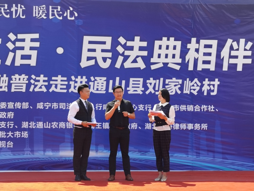 本次活动由咸宁市委宣传部、咸宁市司法局、人行咸宁市中支、咸宁市供销合作社、通山县人民政府主办,人行通山县支行、湖北通山农商行、闯王镇人民政府、湖北海舟律师事务所、咸宁华信农批大市场协办,咸宁广播电视台承办。