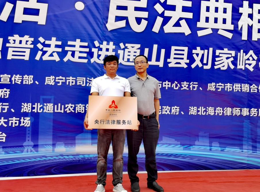 活动现场,人民银行武汉分行法律事务处向刘家岭村授牌——“央行法律站”。