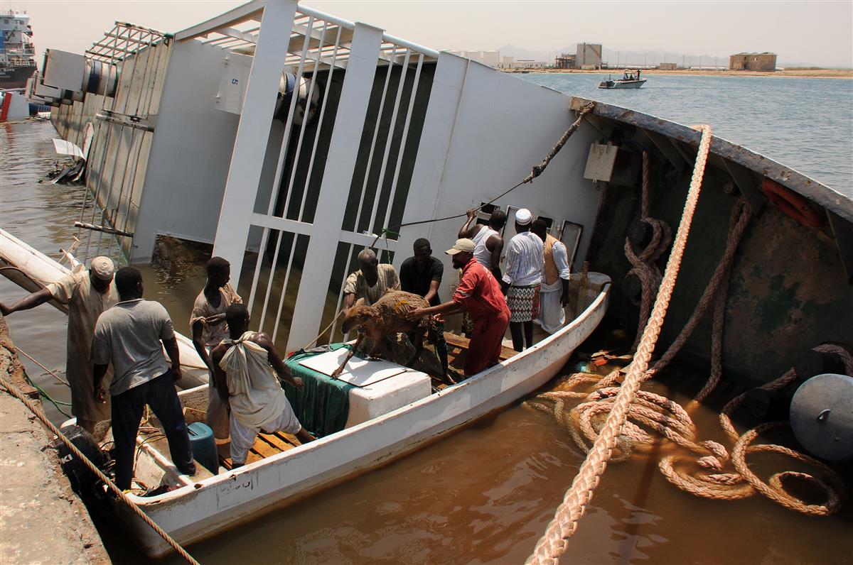 据悉,这艘船名为巴德尔1号(Badr 1),事发时正预备将满船的牲畜从苏丹运送至沙特阿拉伯,船上共有15800只羊。周日凌晨时分,巴德尔1号在萨瓦金港口沉没。